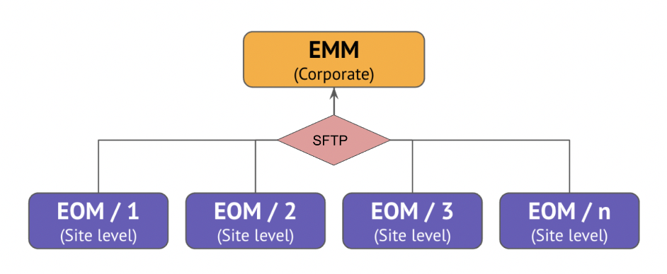We can connect each of your EOM platforms to the target EMM one, so you can synchronize the relevant data you choose from each site level to the corporate level.