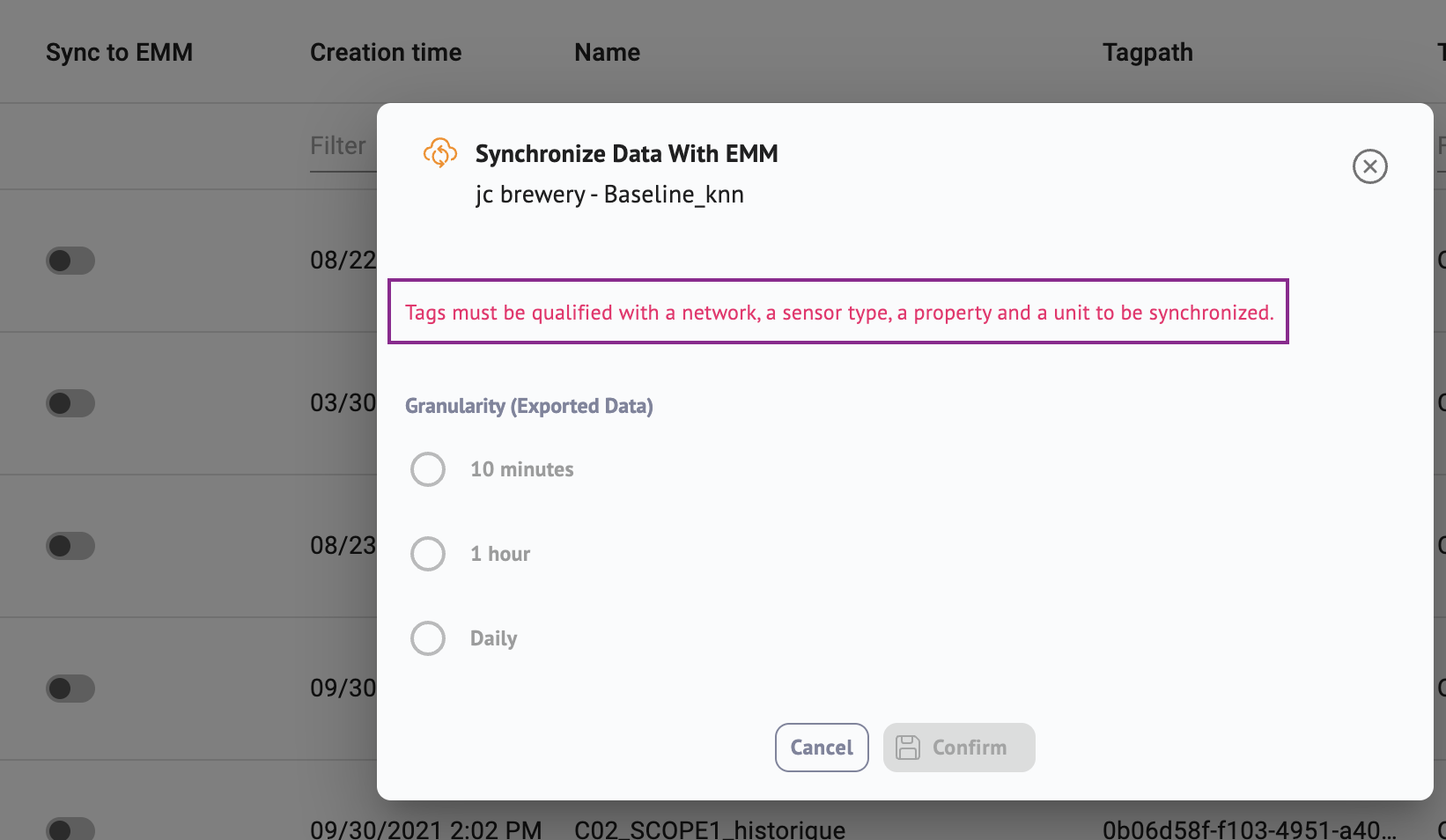 In order to obtain a global view of your sites, you may need to gather targeted data of each site in a global overview platform. The Data Synchronization feature allows you to synchronize tags and their data from an EOM (Energy Optimization Module) to an EMM Platform (Energy Management Module).