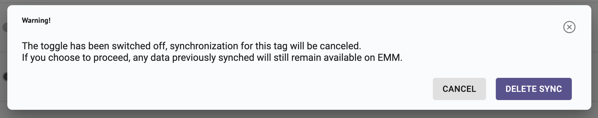 - If the toggle is ON, then your tag is synched with EMM