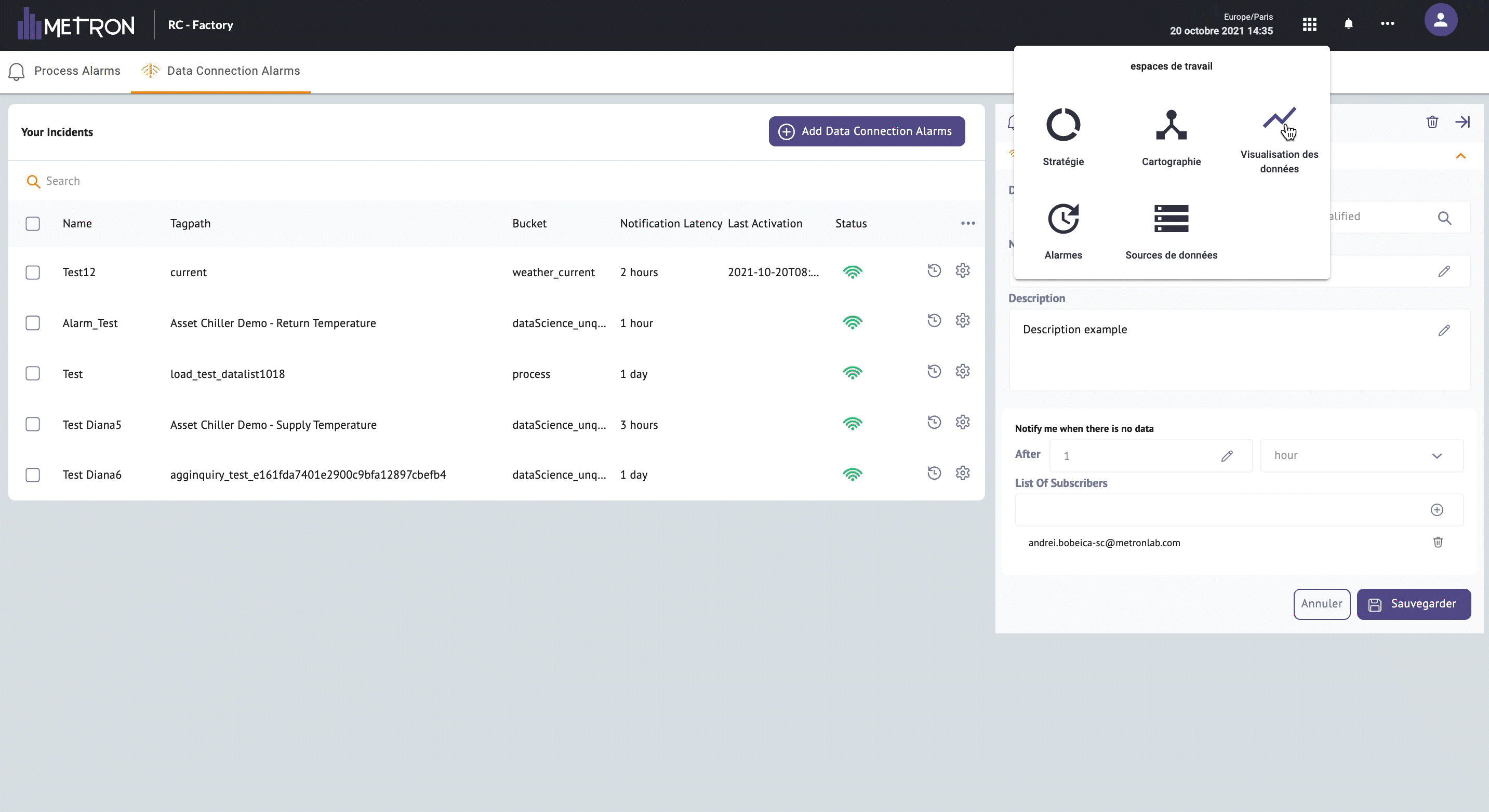 A new interface is now available in your platform to let you configure your alarms, for yourself or your collaborators, to be informed directly by email in case of any data connection issues from your any of your tags.