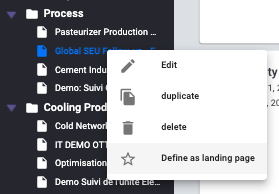 From the page manage menu, you have now the ability to setup a particular page as the default landing page when you log into your platform. Simply click on "Define as landing page" and the star icon will then be filled. To remove this option, click again on it, the star will then be empty.