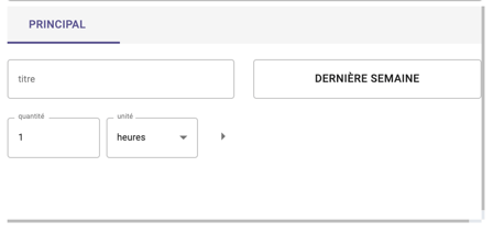 - Principal : Cette option vous permet de paramétrer le titre de votre widget, l'intervalle de temps et la granularité (1 ligne par jour, heure, etc.)