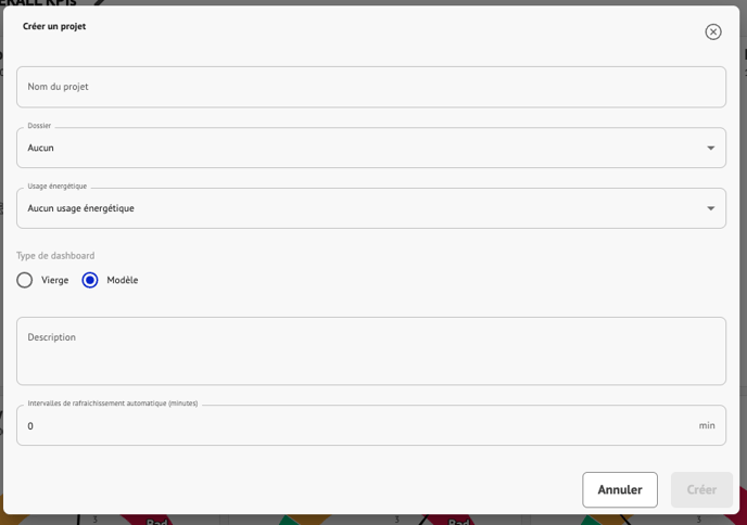 🎉 Une fois que vous avez cliqué sur le bouton "Importer un modèle", la création du tableau de bord sera lancée à partir des informations que vous avez configurées.