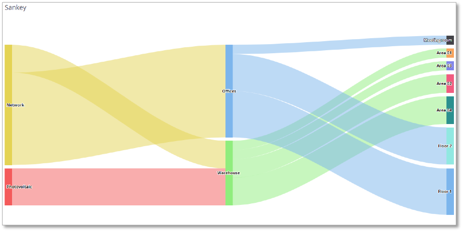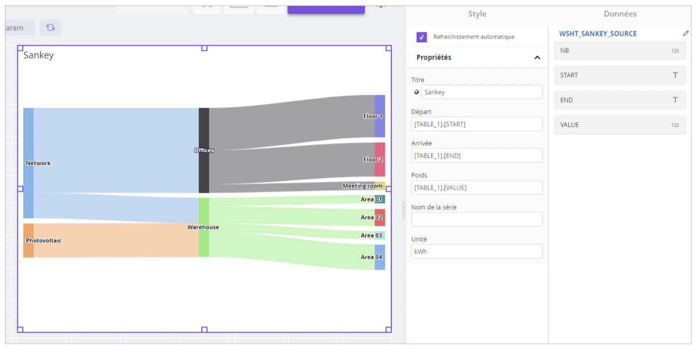 Un nouveau type de diagramme a été créé dans l’éditeur de widgets: le diagramme Sankey, qui permet de suivre les flux entre les différentes entités.