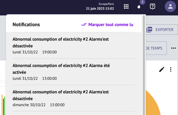 Vous pouvez maintenant effacer les notifications de toutes vos alarmes en un clic grâce au nouveau bouton "Marquer tout comme lu":