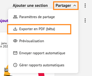 Espace Visualisation des Données > Partager > Exporter en PDF (bêta):