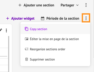 En plus de tableaux de bord et des widgets, vous pouvez désormais copier-coller une section dans le même tableau de bord ou dans une autre page.